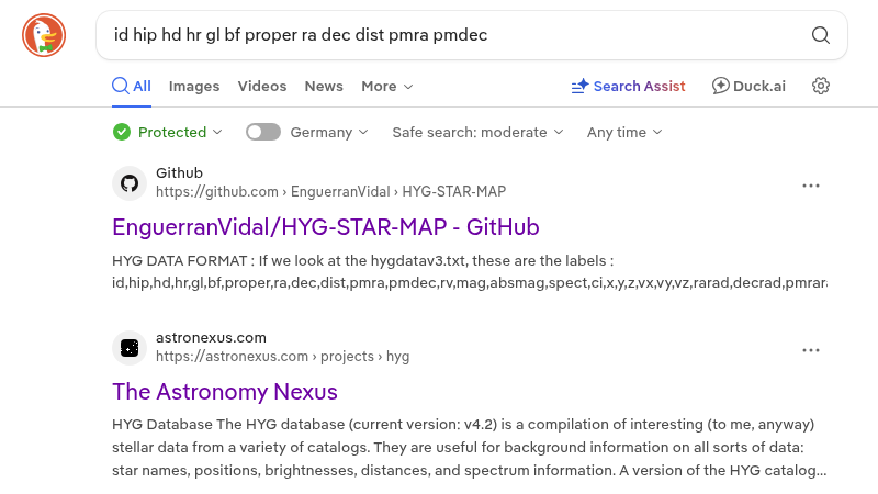 Zack, erster Link, da hatte ich sie. Der Name HYG sagte mir gleich was, aber ich wäre im Leben nicht drauf gekommen.