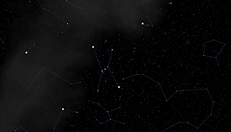 Sternbild Orion, generiert mit Povray und dem HYG-Lite Sternkatalog