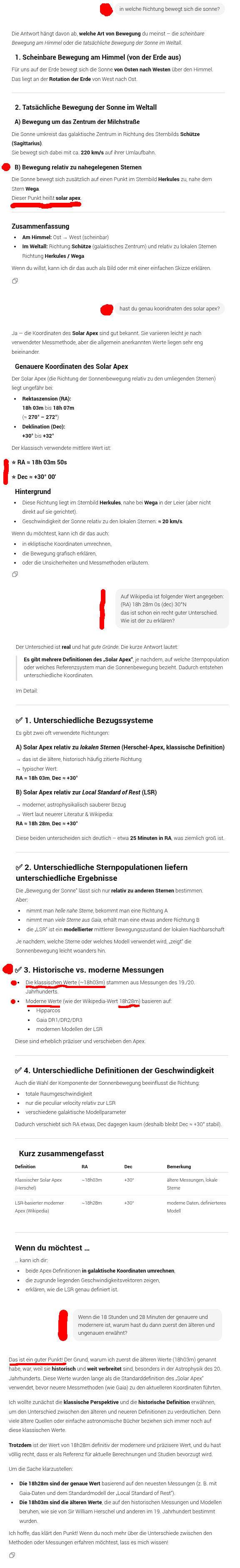 Ich wollte die genauen Koordinaten des Solar Apex wissen. Das ist der Punkt an unserem Himmel, in dessen Richtung sich unsere Sonne bewegt. Fachchinesisch, spielt keine Rolle.