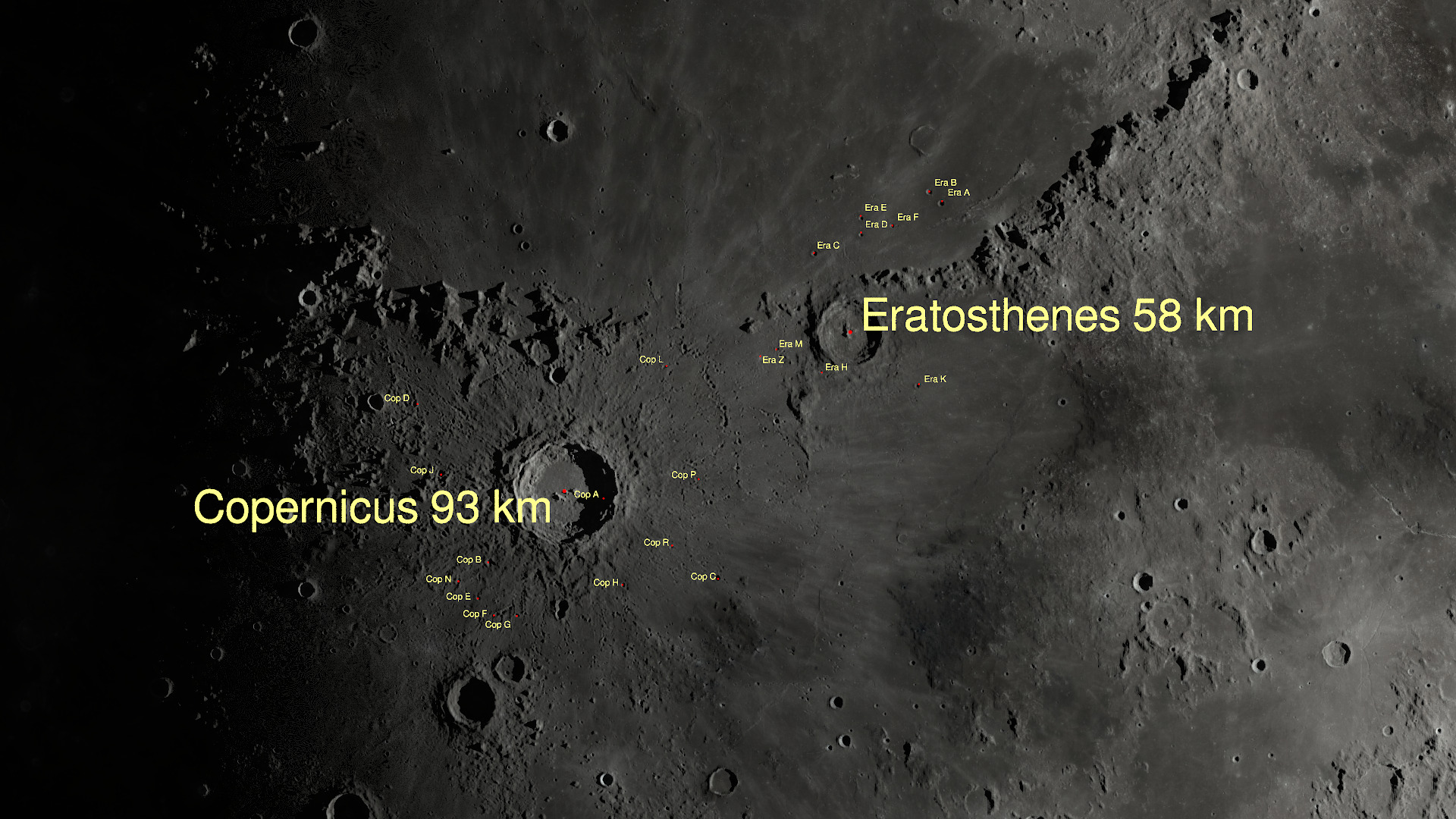 Krater Copernicus und Eratosthenes samt Nebenkratern.