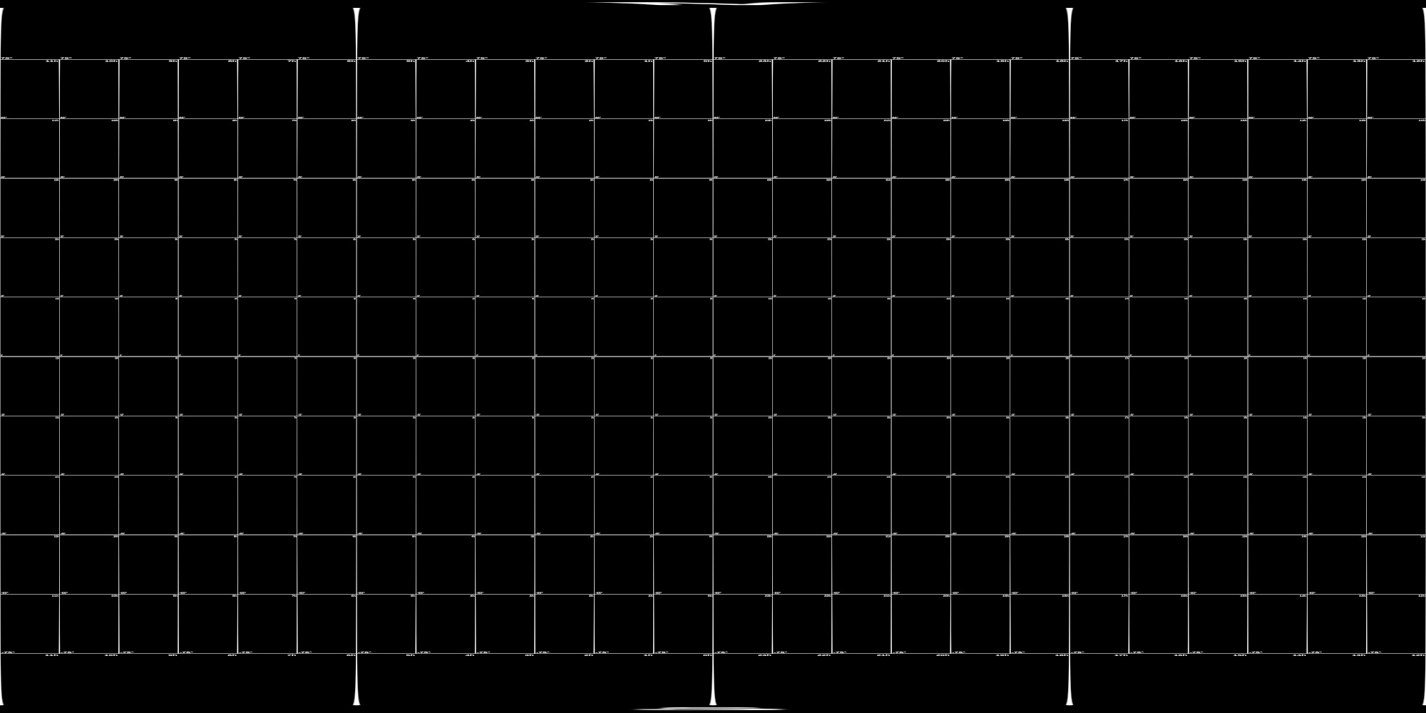 Zeigt ein Koordinaten-Gitternetz mit je 24 Linien für beide Richtungen, horizontal (Rektaszension) somit eine Stunde pro Rechteck, vertikal (Deklination) je 15 Grad.