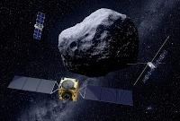 DART beschossen, als Test für den Fall, das die Umlaufbahn eines Asteroiden auf Kollisionskurs mit der Erde verändert werden müsste. DART war erfolgreich, die Umlaufzeit des Mondes wurde von 11 Stunden und 55 Minuten