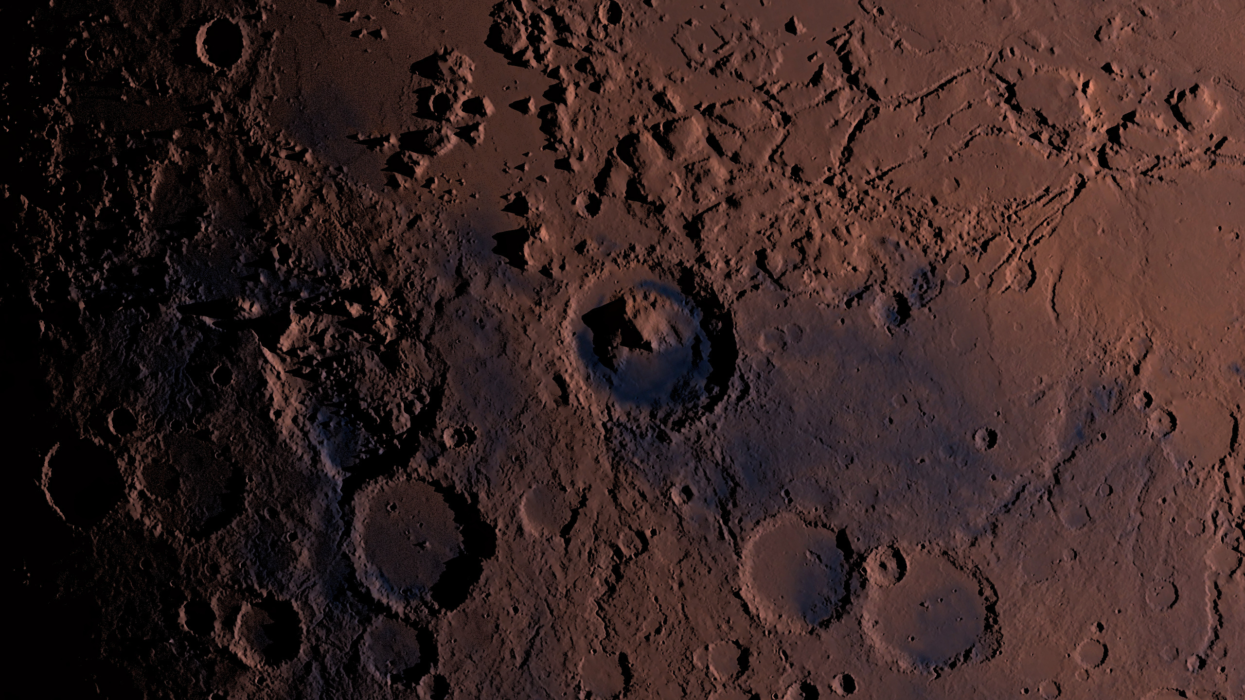 First renderings of planet Mars, for which I used raw data from NASA, as with the Moon. Again, rather quick shots, which reach the limit of resolution, but I'm sure I'll be able to adjust the quality a bit at some point. Brightness, depth of the valleys and height of the volcanoes want to be further coordinated.