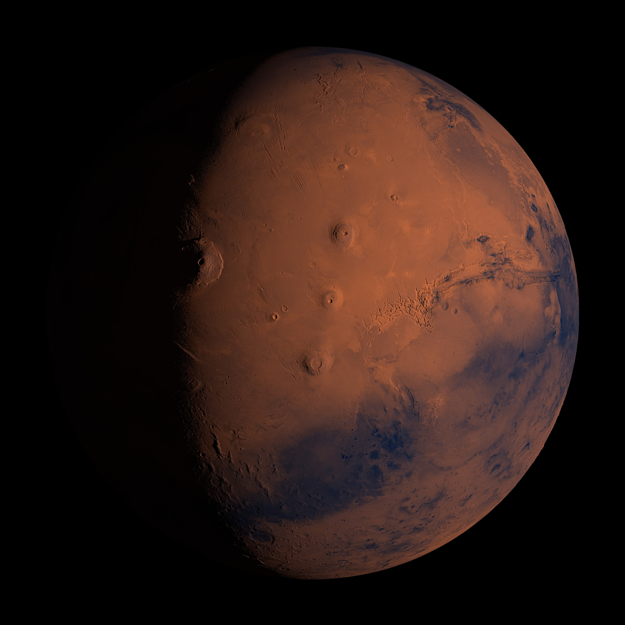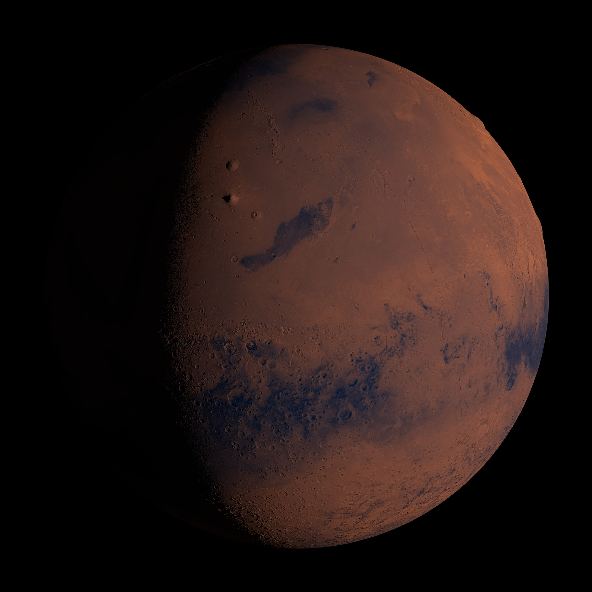 At the top right, Olympus Mons makes the planet a bit un-round.